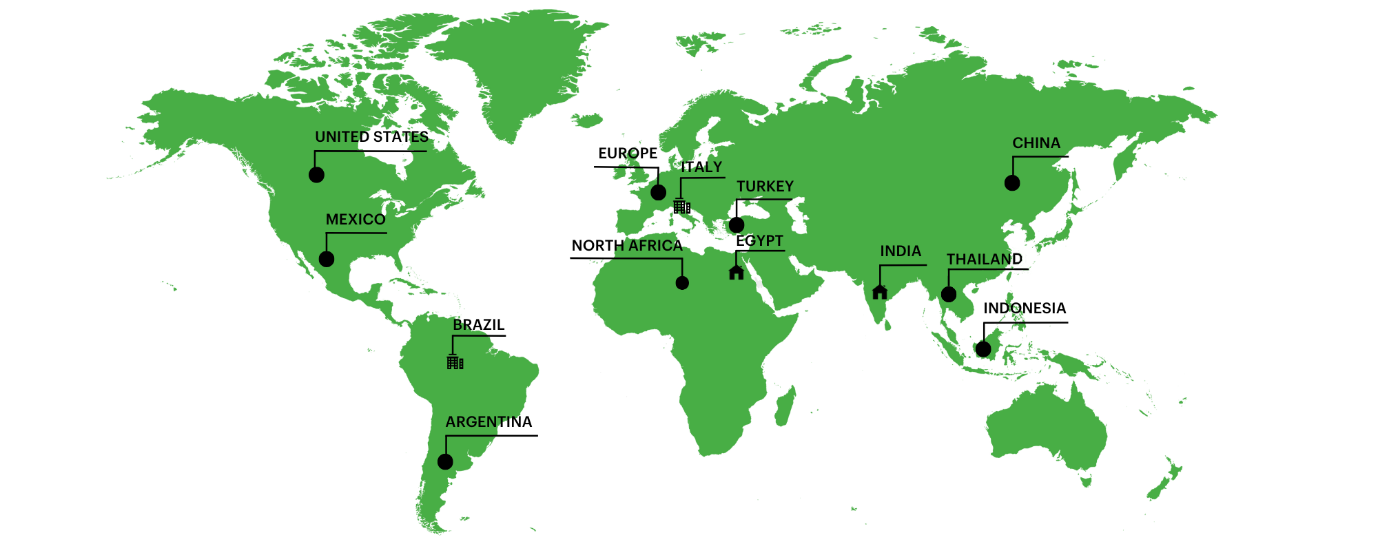 Italia, Europa, Nord Africa, USA, Centro America, Sud America, Turchia,